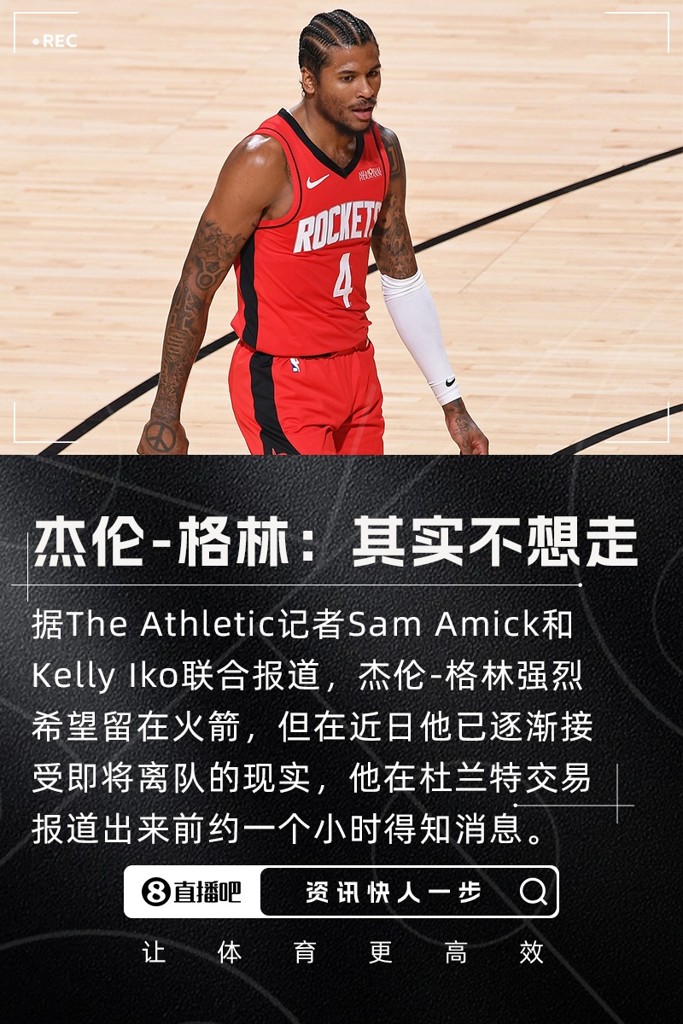 名记:杰伦-格林很想留在火箭 他在交易曝出前约一小时收到了消息