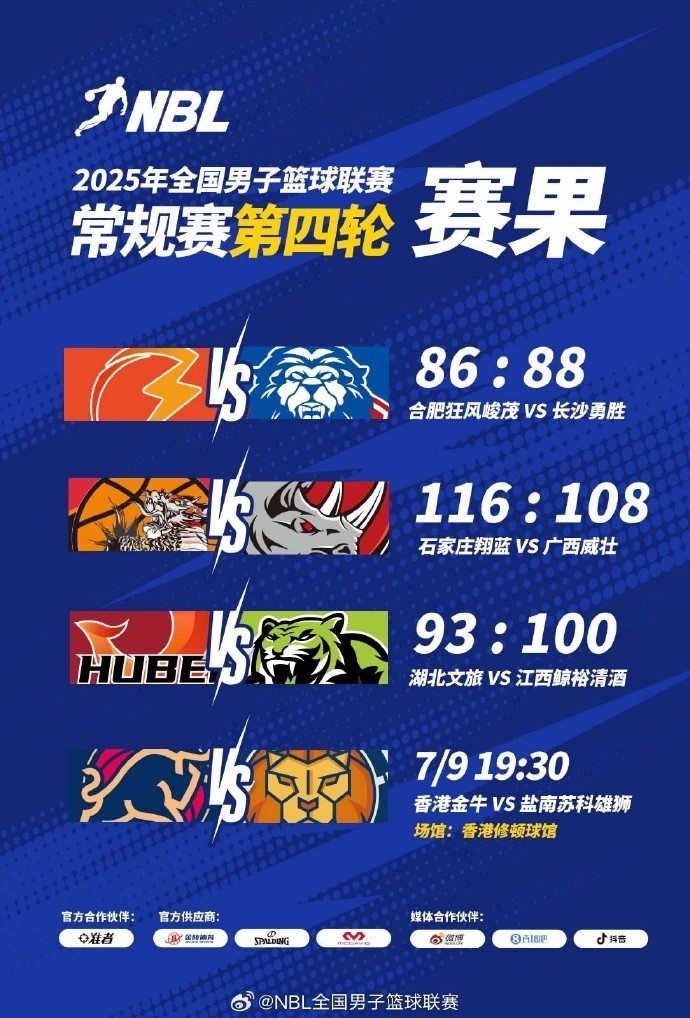 【战报】2025年NBL常规赛第四轮今日三场战罢,长沙勇胜加时鏖战胜出,广西湖北仍未尝胜绩。