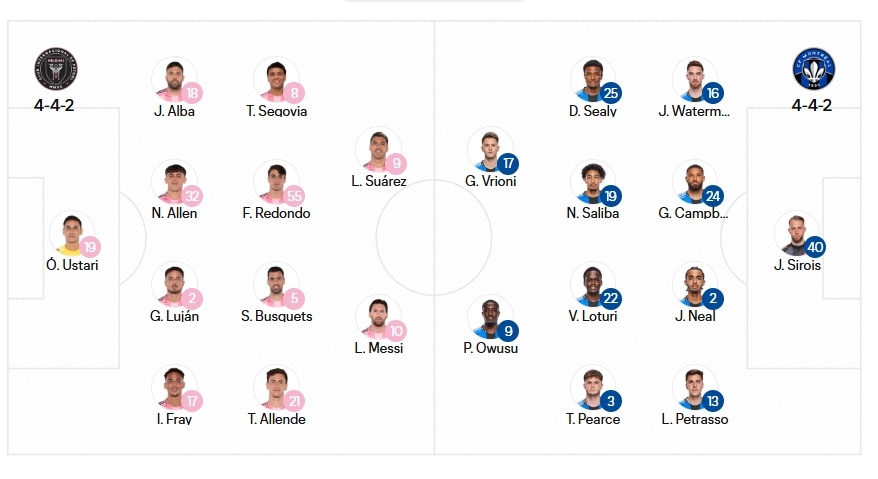 5月29日讯 美职联常规赛,迈阿密国际主场对阵蒙特利尔冲击。赛前,官方公布了本场的首发名单。