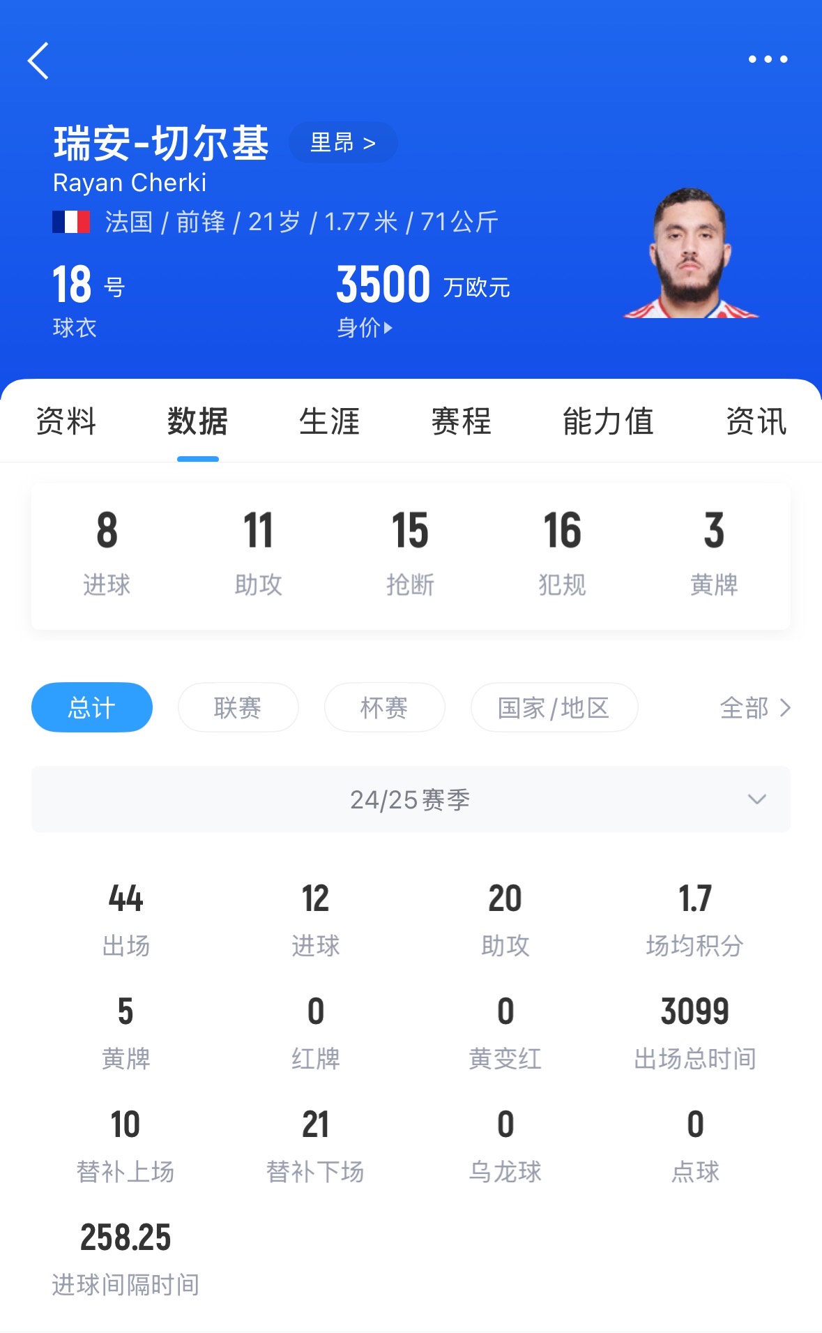 法国U21国脚切尔基本赛季表现出色,贡献12球20助攻。