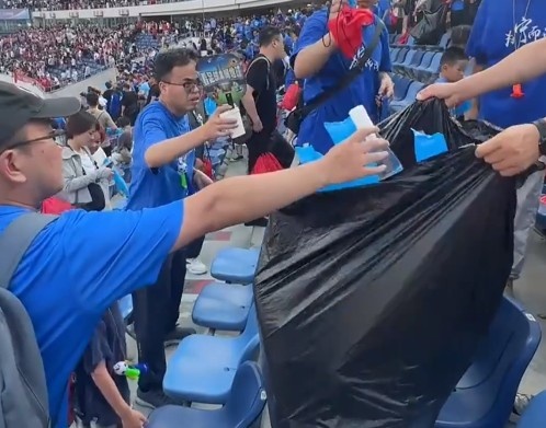 随着时代的进步,这样的场景也渐渐出现在中国的体育场里。职业足球联赛,随着主队客场出征的江苏球迷慢慢也会组织清理看台上垃圾,不管场上胜负如何,江苏球迷的高素质还是让各地球迷认可的。在世界各种体育大赛的赛场上,但凡中国球迷集体助阵,清理看台垃圾的现象也越来越普及。