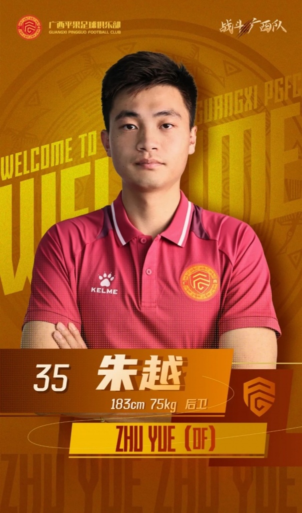 官方:朱越、王金帅租借加盟广西平果