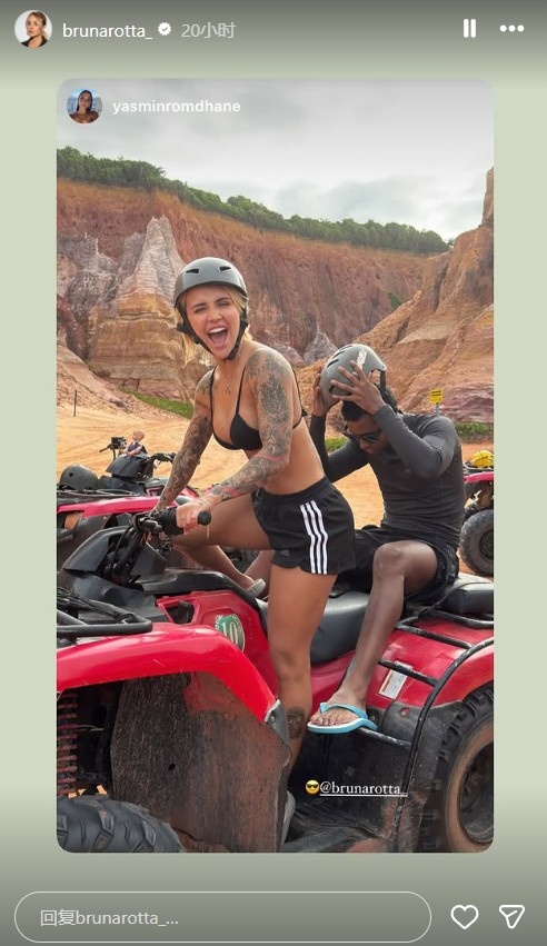 共度甜蜜假期!罗德里戈女友布鲁娜社媒晒两人共骑四轮摩托视频