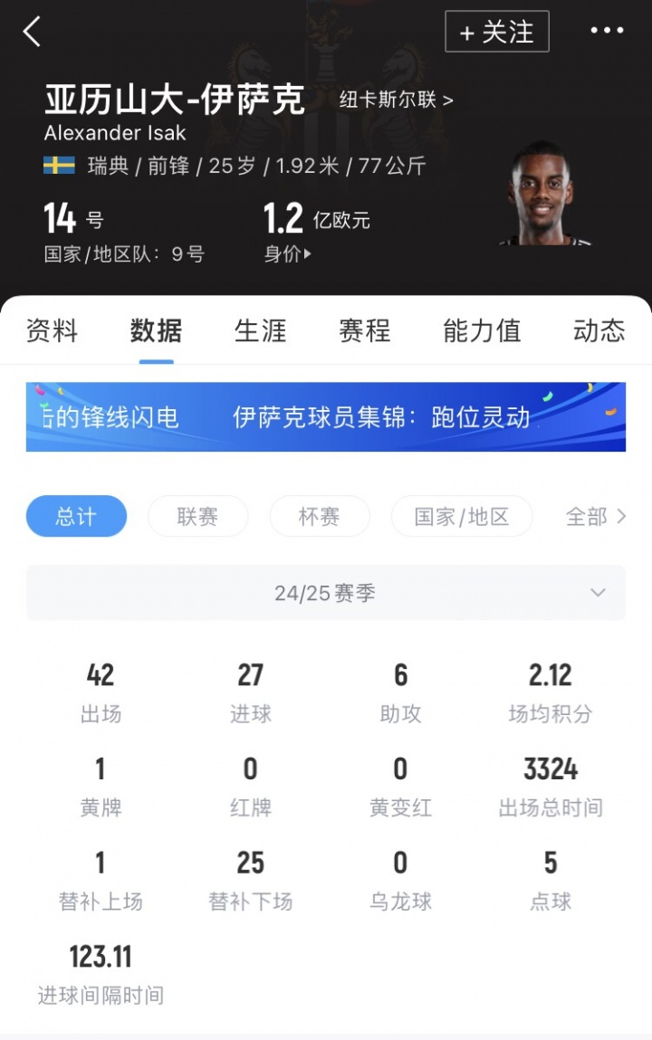 得加钱!罗马诺:纽卡拒绝了利物浦对伊萨克1.2亿镑的正式报价