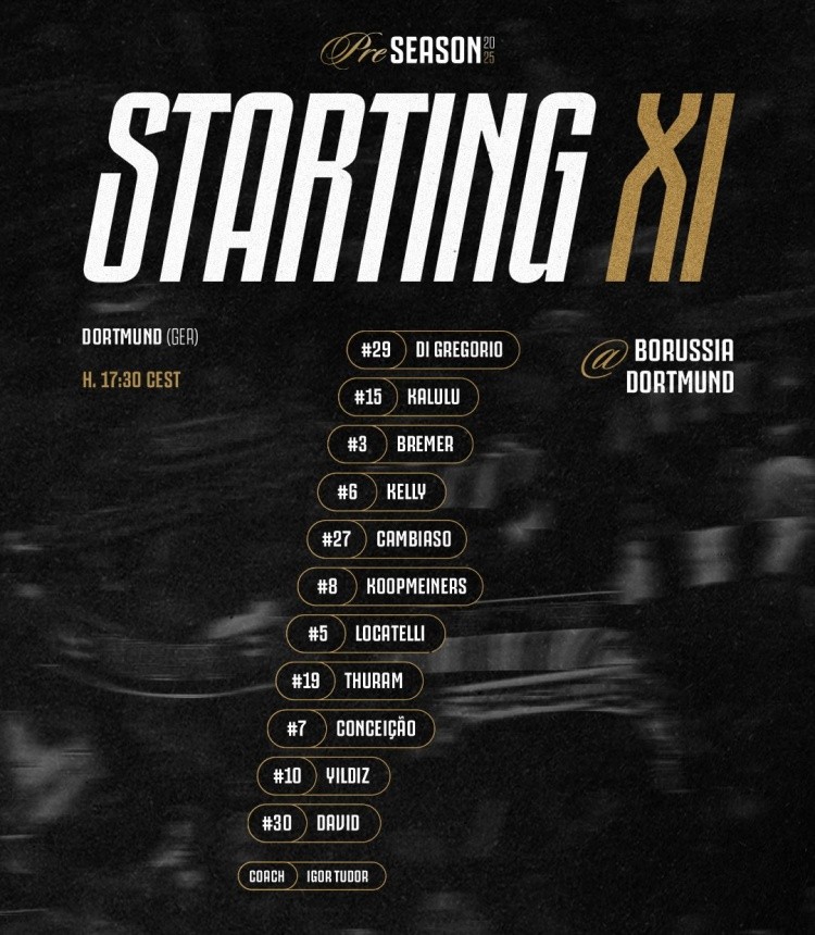 友谊赛尤文vs多特首发:戴维、伊尔迪兹领衔,胡梅尔斯在列