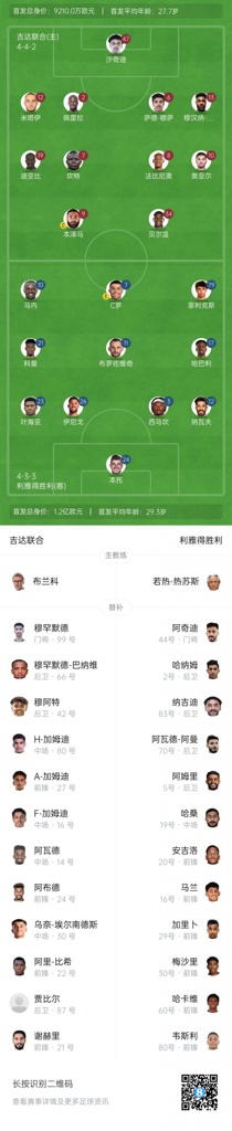 吉达联合首发:47-沙奇迪、12-米塔伊、2-佩雷拉、6-穆萨、13-尚基提、8-法比尼奥、7-坎特、10-奥亚尔、19-迪亚比、9-本泽马、34-贝尔温