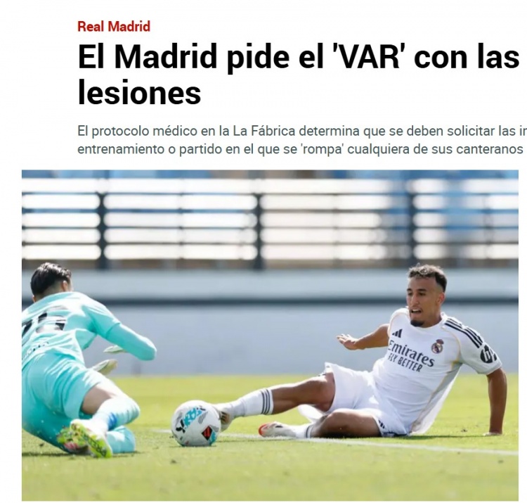这种做法并非出于对收到报告的怀疑,而是为了完善伤病报告并收集所有相关数据,以便支持相应的诊断。事实上,这是皇马青训营长期遵循的一种操作流程,与阿韦洛亚团队的工作方式密切相关,并已扩展到主要的预备队。这一举措是俱乐部对细节极致关注的一部分,尤其是在处理伤病方面。